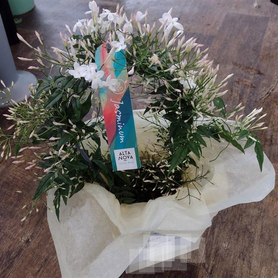 Scented Jasmin plant (35cm-40cm) in plant pot. The pot is included and pot design may vary. Plants will be gift wrapped or in a gift bag.
